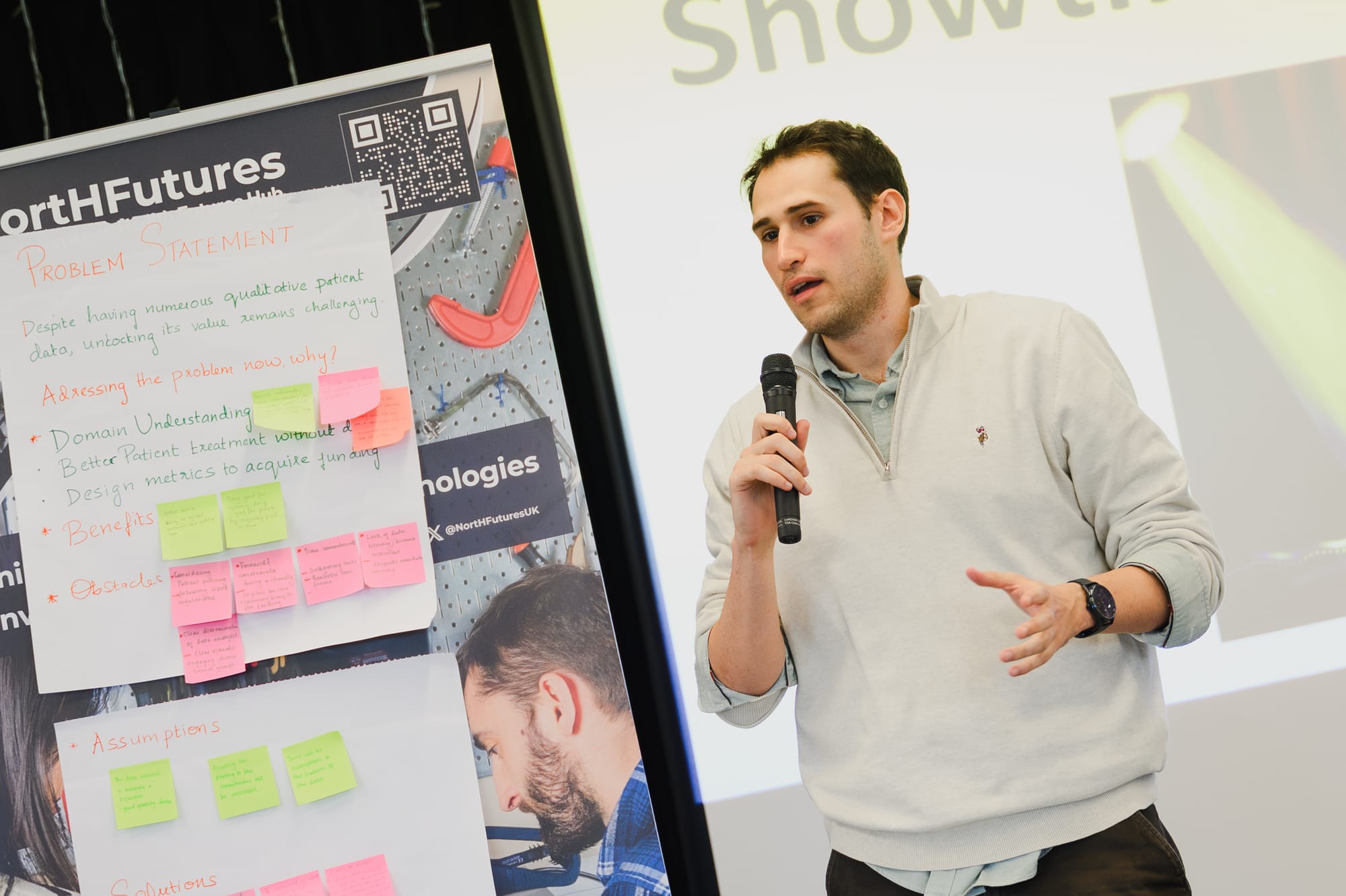 To support participants in designing innovations with end users in mind, we were joined by Consultant on Responsible Digital Transformation Adam Parnaby and HDR UK Patient and Public Involvement and Engagement Manager Beth Friel.